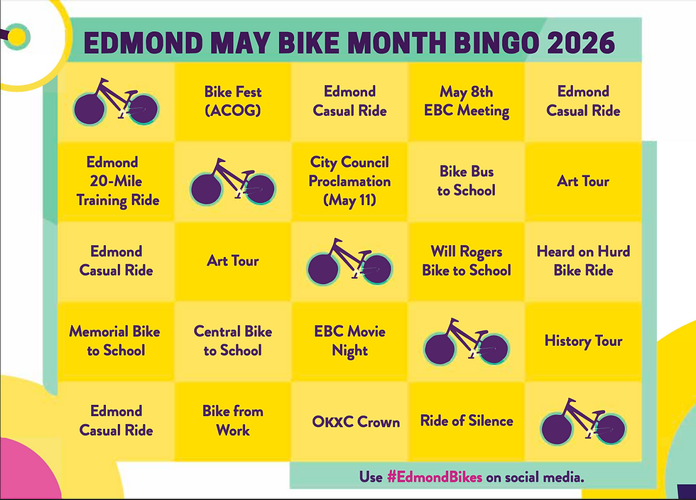 The City of Edmond and partner organizations have announced Bike Month events for May 2026. The calendar is packed with events for families, casual cyclists, local businesses, urbanists, and hardcore athletes.